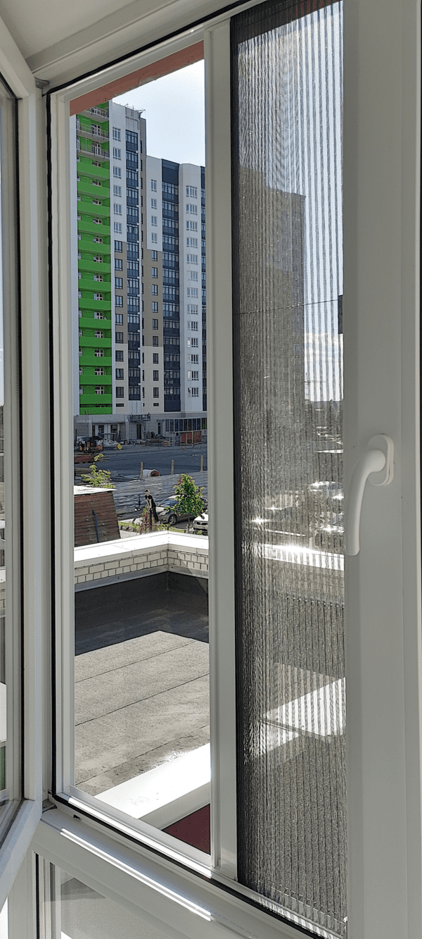 Москитная сетка плиссе – раздвижная конструкция с плиссированным сетчатым полотном, которое складывается в «гармошку» и убирается в боковой или верхний профиль. Обеспечивает эффективную защиту помещения от уличной пыли, пыльцы и насекомых. Может использоваться для окон любой формы и размера, дверей на балконе.