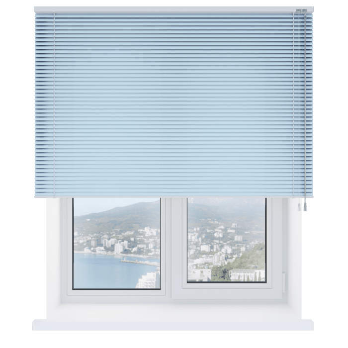 Алюминиевые горизонтальные жалюзи – солнцезащитные устройства, состоящие из поперечных алюминиевых планок (ламелей), которые можно поворачивать для регулировки света и поднимать для полного открытия.