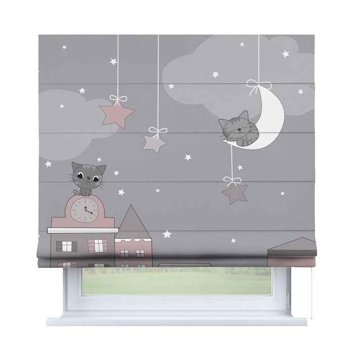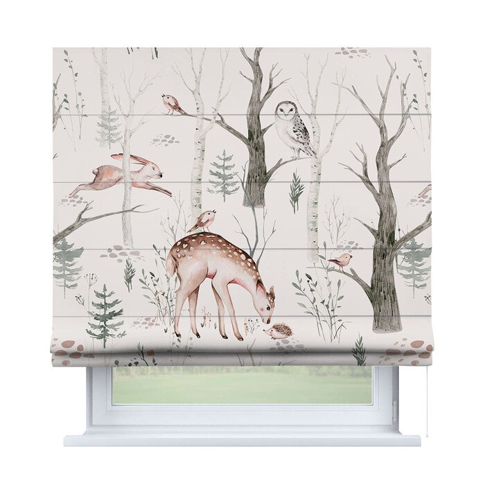 Римская штора для проёма «Скандинавский питомник», карниз верёвочный