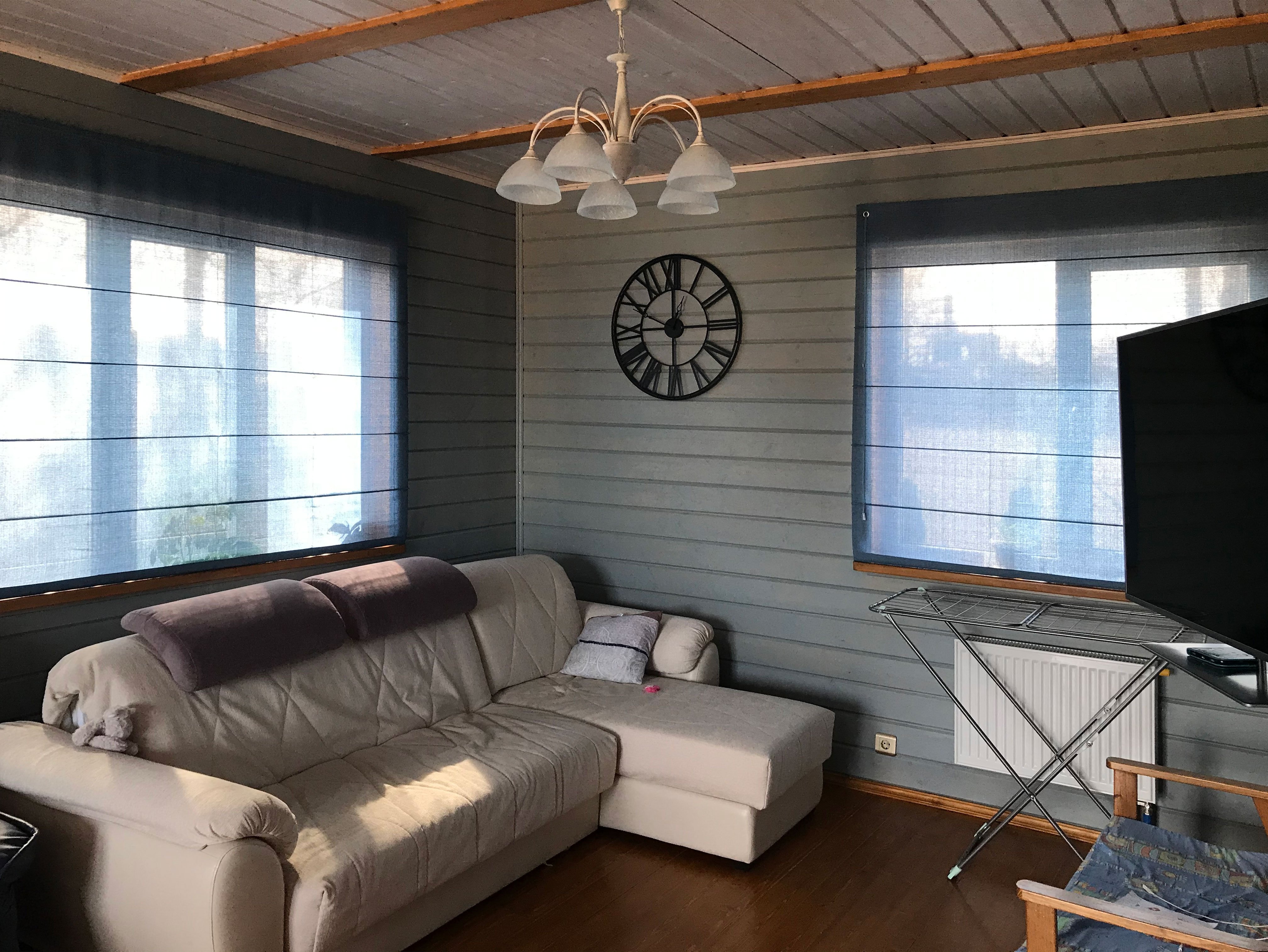 Видно только ткань шторы, крепление скрыто под ней.