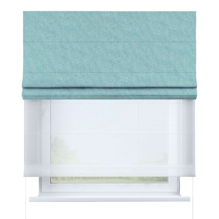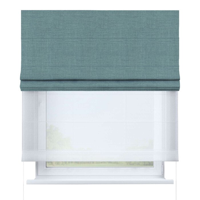 Римская штора день-ночь лён димаут бирюзовый, карниз верёвочный