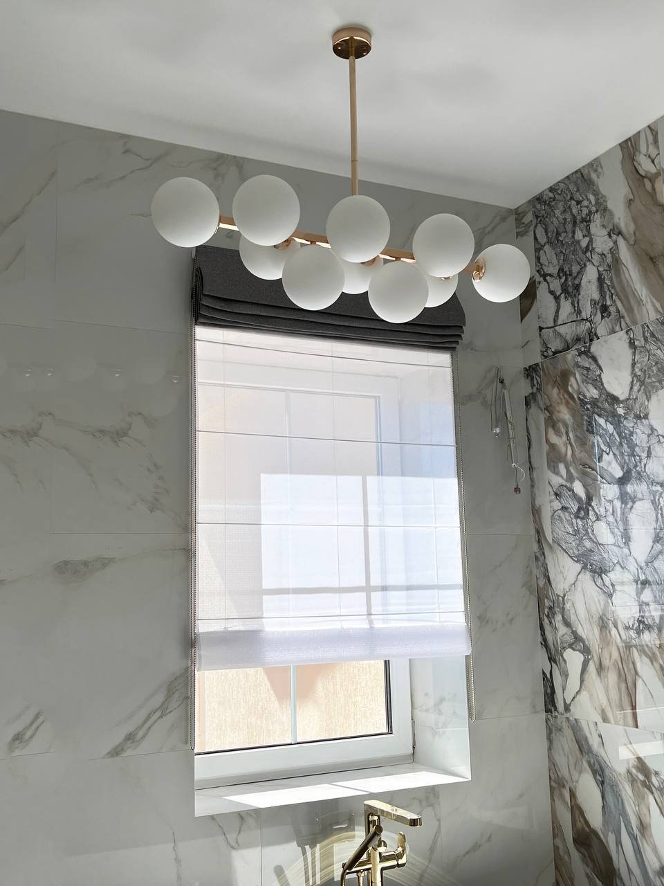 - Универсальность. Благодаря широкому выбору тканей (от органзы до блэкаута), римскую штору день-ночь можно гармонично вписать в любой интерьер — от классики до минимализма.