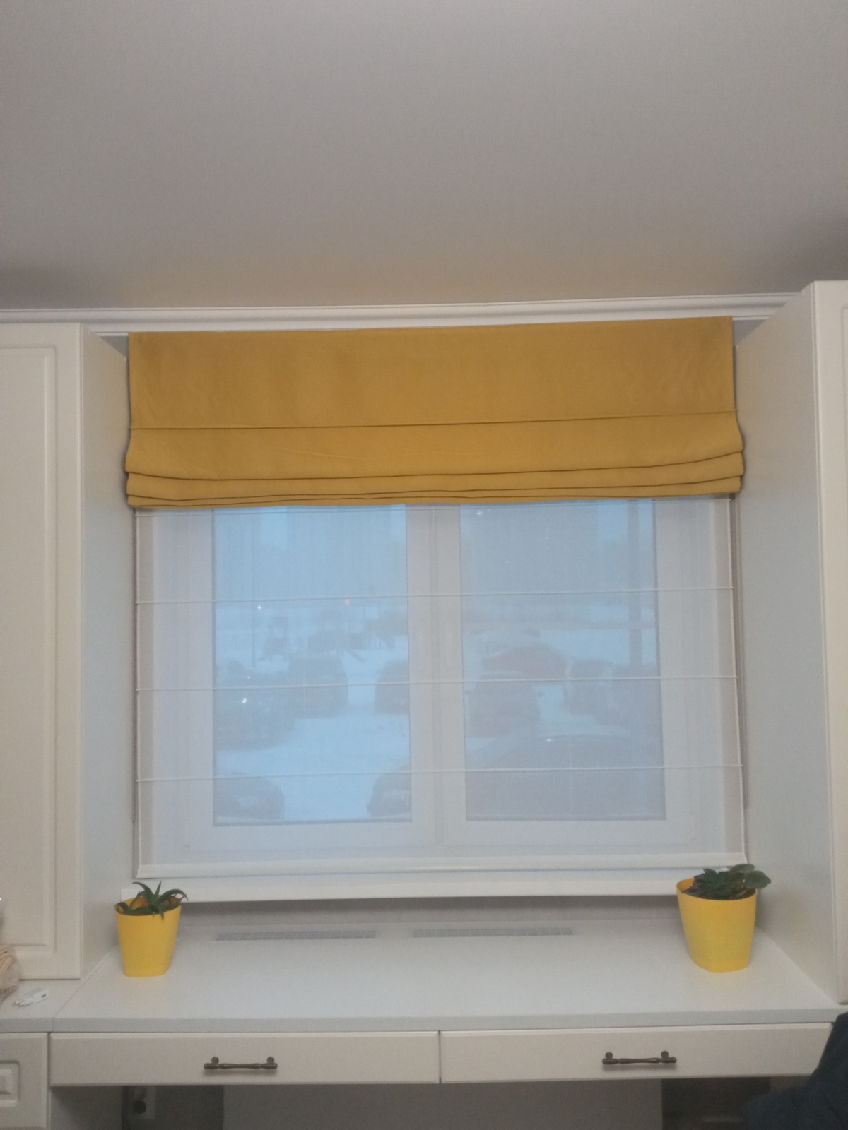 - Экономия пространства. Римская штора на окно день ночь заменяет традиционную комбинацию тюля и тяжелых штор, занимая минимум места и не загромождая подоконник.