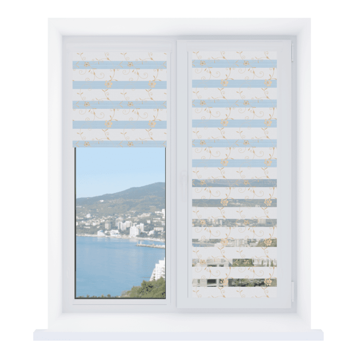 - Регулировка освещения. Возможность гибко управлять световым потоком, чередуя прозрачные и плотные полосы ткани, позволяет добиться как рассеянного света, так и полного затемнения, а также полностью открыть световой проем окна.